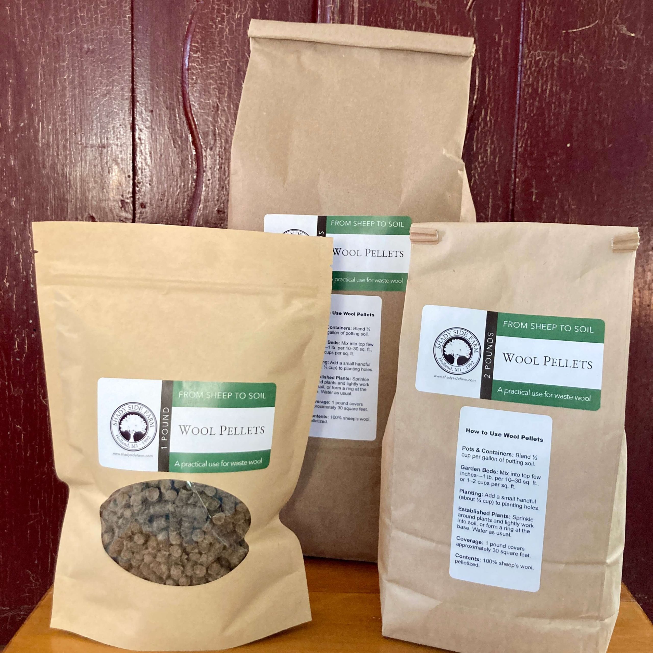 These pellets are simply another practical use for the wool our sheep produce each year. Turning it into pellets helps make use of a natural farm by-product that might otherwise go unused, while offering gardeners a straightforward way to incorporate wool into their soil.